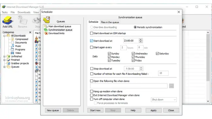 - Pemrograman Pengunduhan: Anda dapat menjadwalkan pengunduhan Anda dan IDM akan mengambil file pada waktu yang telah Anda tetapkan.
